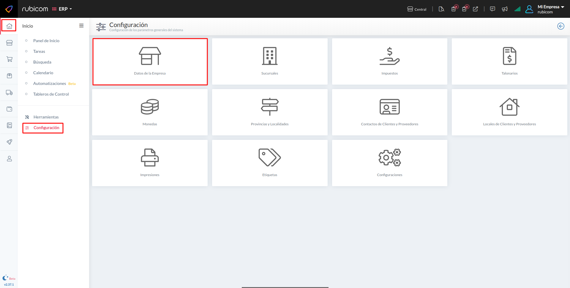 En el menú tenés que ir a Inicio > Configuración e ingresar a Datos de la Empresa.