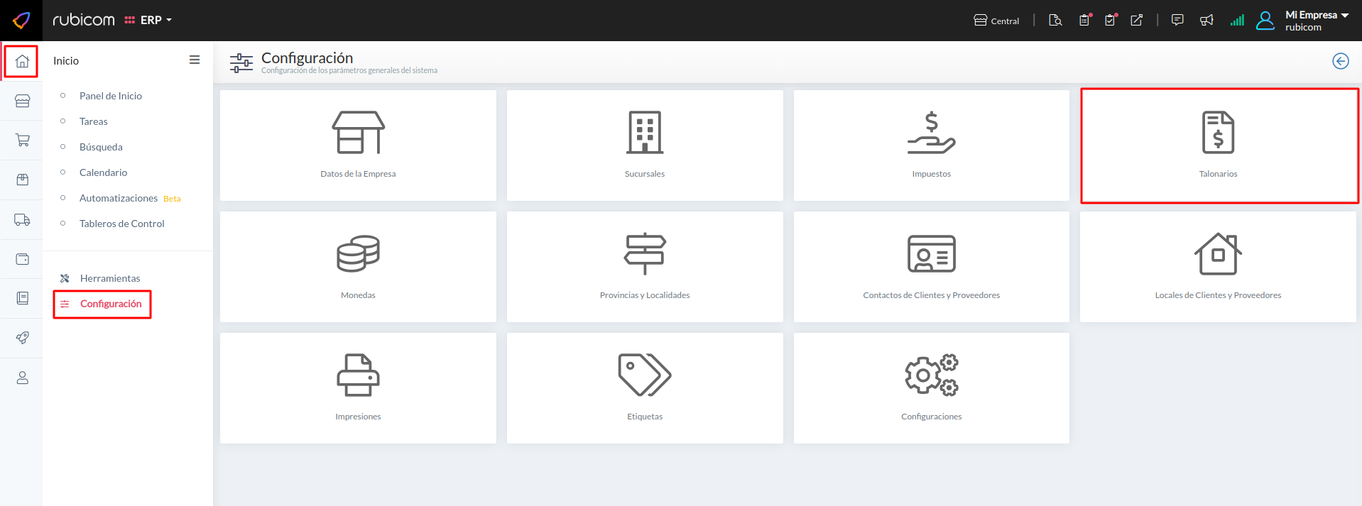 En el menú tenes que ir a Inicio > Configuración e ingresar a Talonarios.